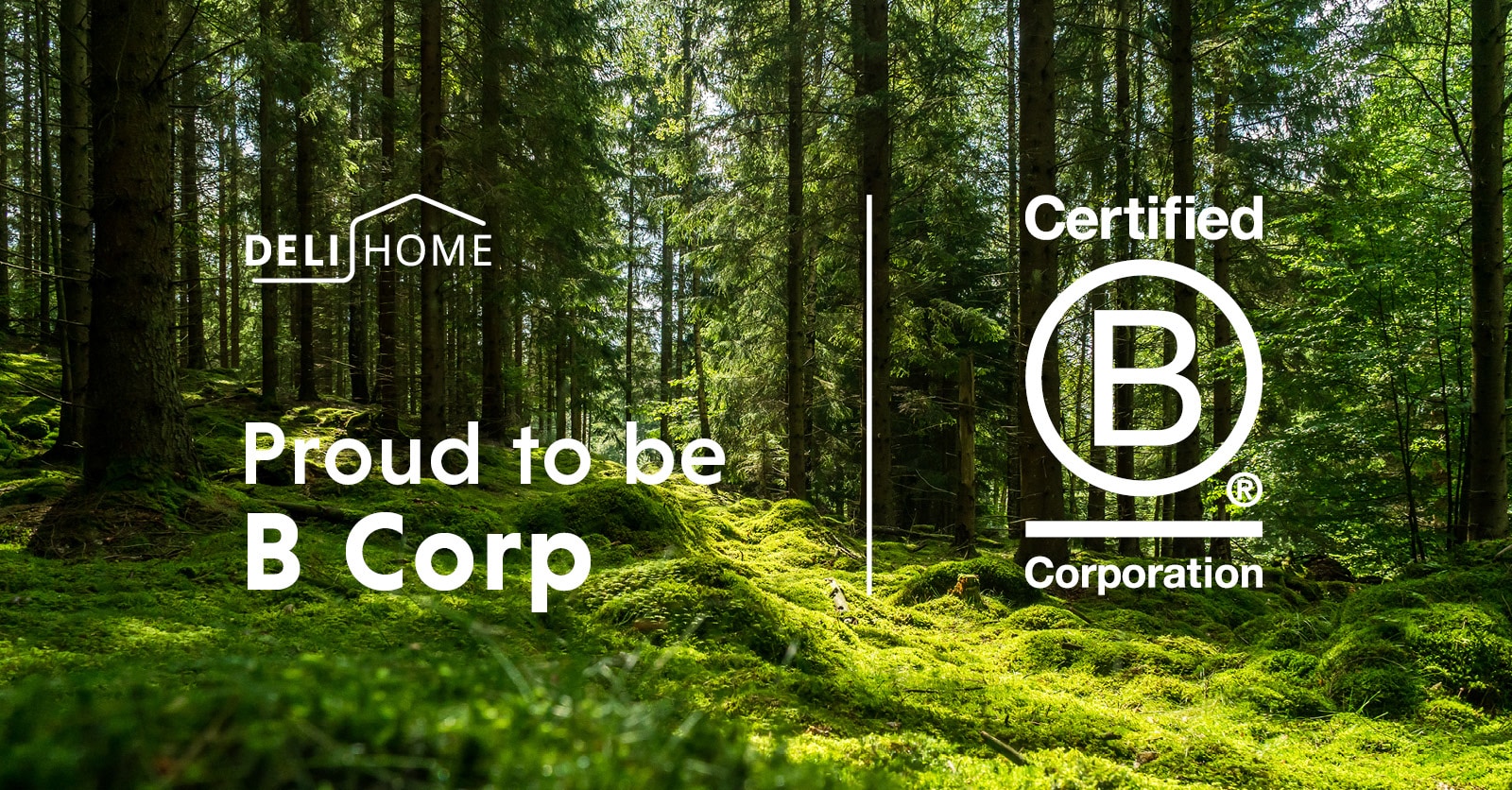 Deli Home is een van de eerste grote Europese producenten die de B Corp-status hebben verkregen. Met deze certificering laat Deli Home zien dat duurzaamheid en verantwoordelijkheid stevig verankerd zijn in haar bedrijfsvoering en cultuur.